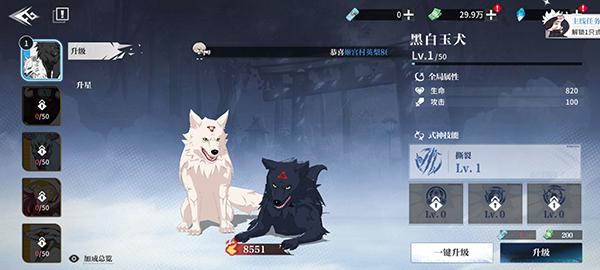 2、式神升級需要消耗咒術(shù)靈水,升級后可大幅提升傷害,并提升全局屬性。