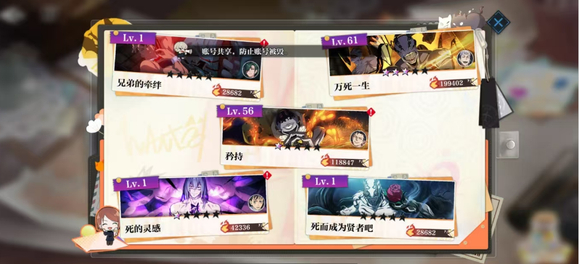 新手期:集中資源培養(yǎng)1-2個核心輸出(如五條悟),搭配2個輔助(東堂葵、七海建人)快速推圖。