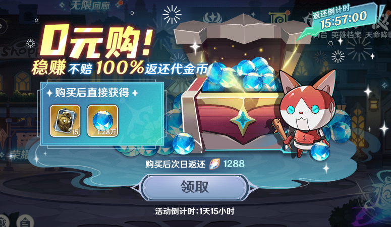 3.購(gòu)買0元購(gòu)禮包,次日全額返還代金幣